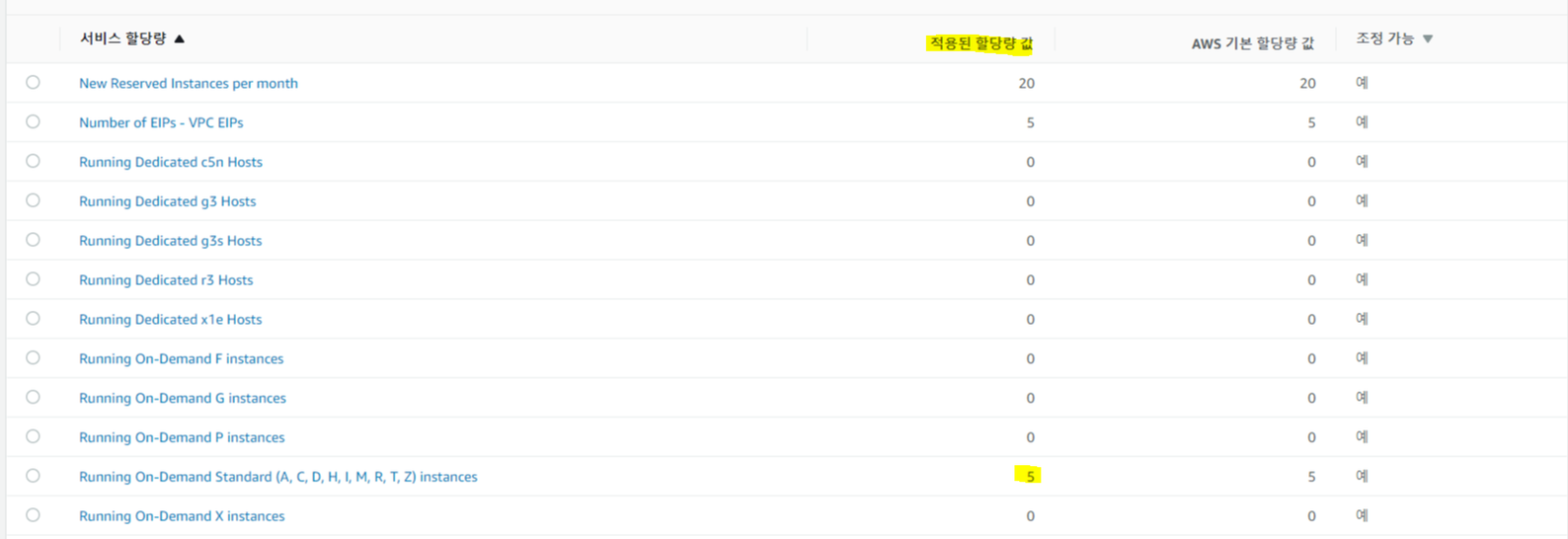 공식 홈페이지 EC2 Default Limit : AWS 전체 사용자가 사용하고 있는 자원에 대에 대해 프로비저닝 된 Limit.